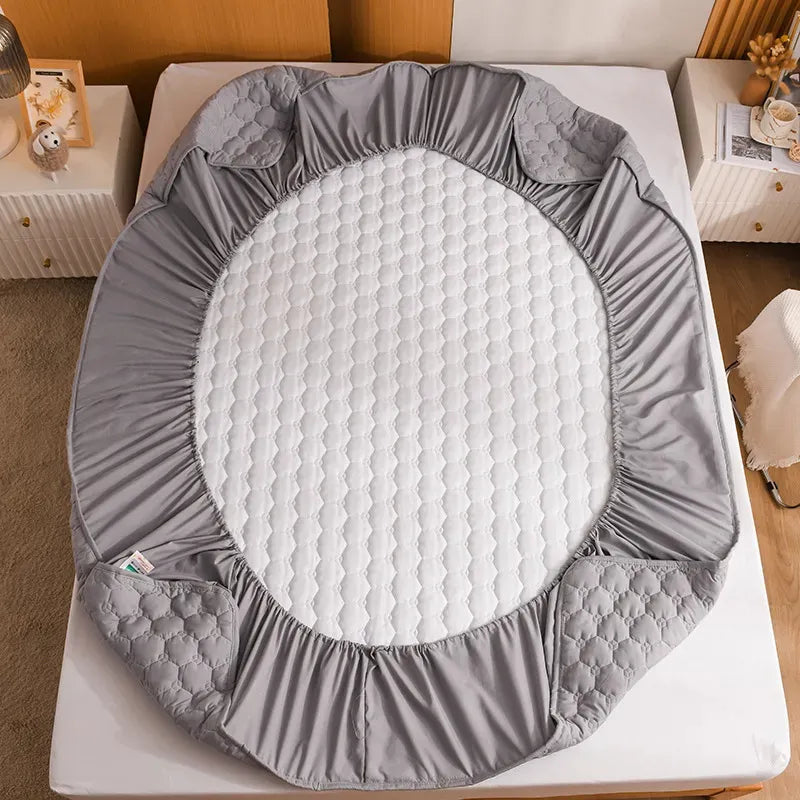 Solo lo pones sobre el colchón como una sábana ajustable y listo. No se mueve, no se arruga, y se ve espectacular. ¡Cualquiera puede usarlo sin esfuerzo!