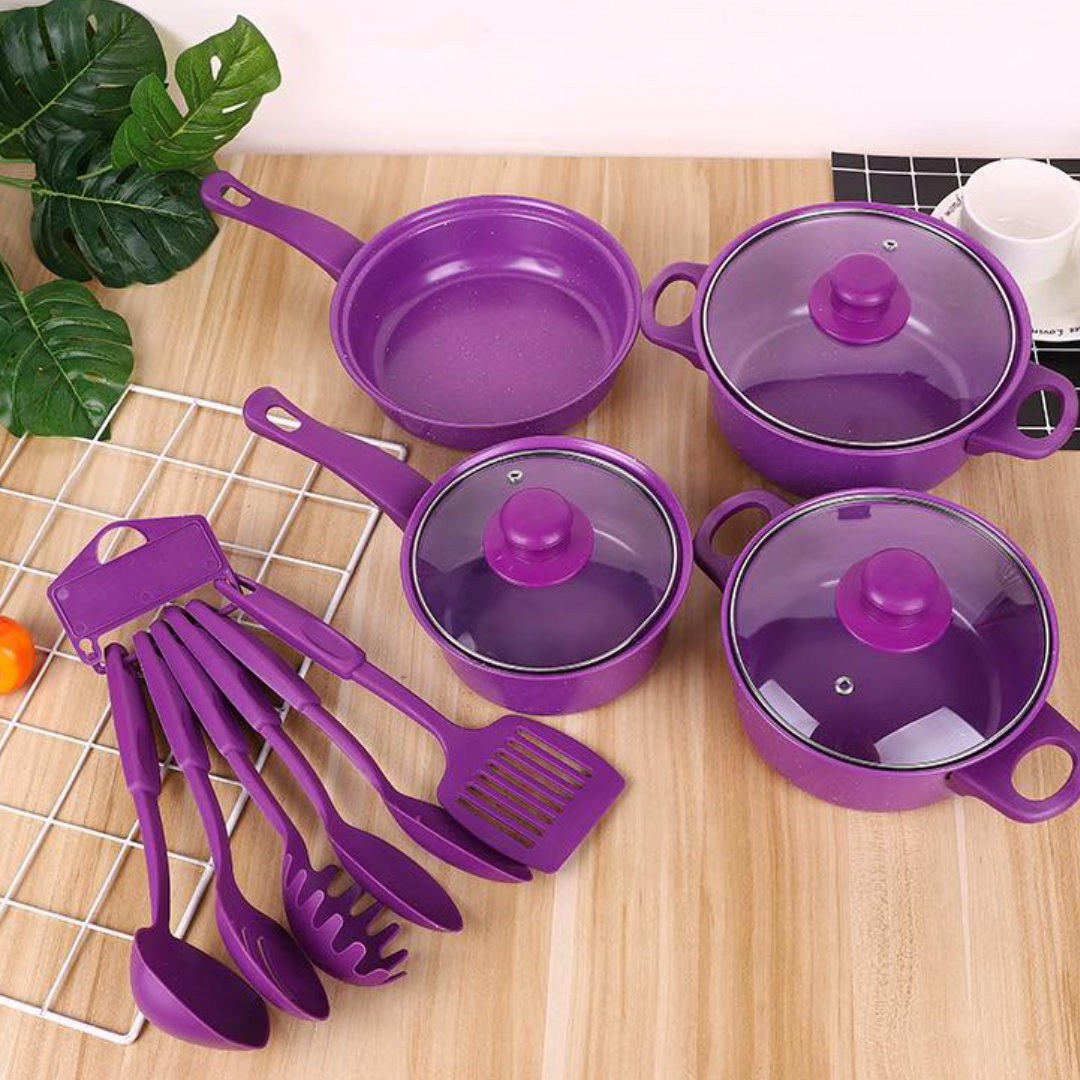 🟣 Juego de Ollas y Sartenes Antiadherentes – 13 Piezas